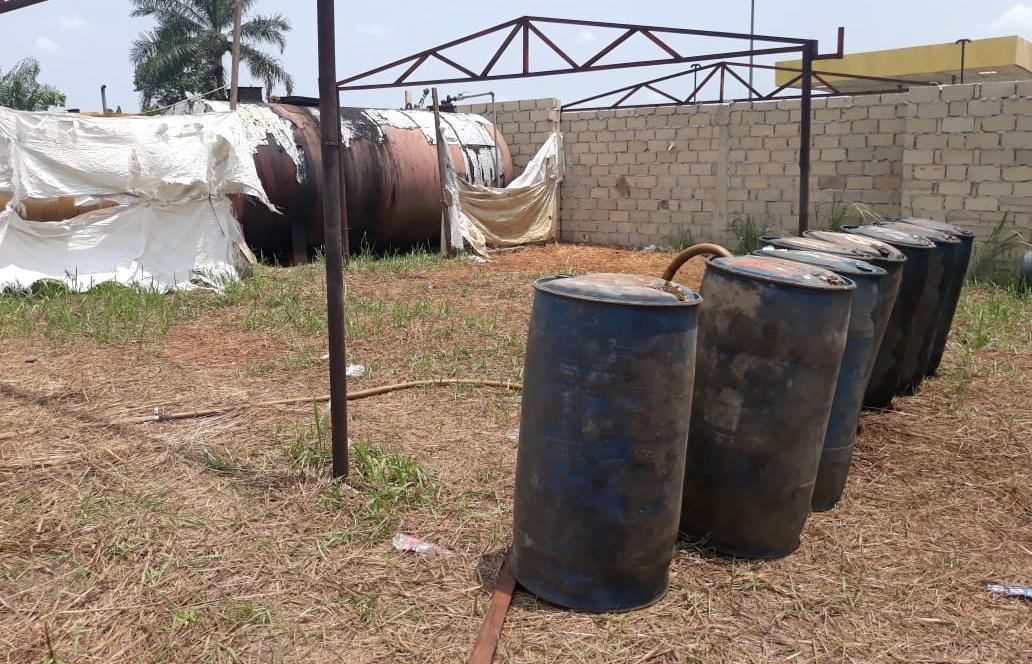The product was found camouflaged at an HL.Costa Organizations illuminating oil resale station, located in the village of Vosso Fuila, Dinge Commune, packaged in 1/25 liter plastic tanks and drums inside a backyard, this being another of the ways in which crude derivatives smugglers operate.