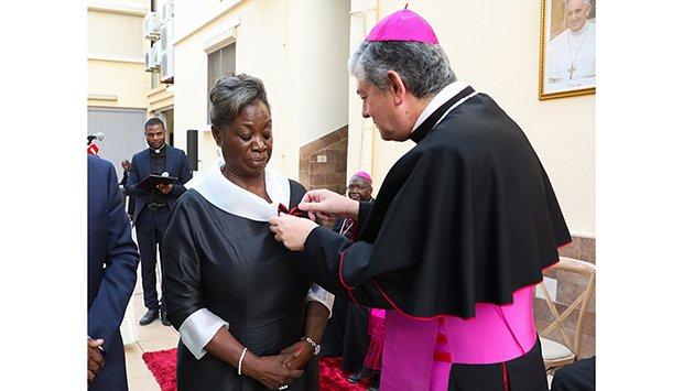 Africa-Press – Angola. The Secretary of the President of the Republic for the Social Area, Maria de Fátima Viegas, was, by order of Pope Francis, decorated yesterday, in Luanda, with the pontifical medal of “Dame of the Order of São Silvestre Papa”, in recognition of her work provided for the benefit of the Catholic Church and the Angolan State.