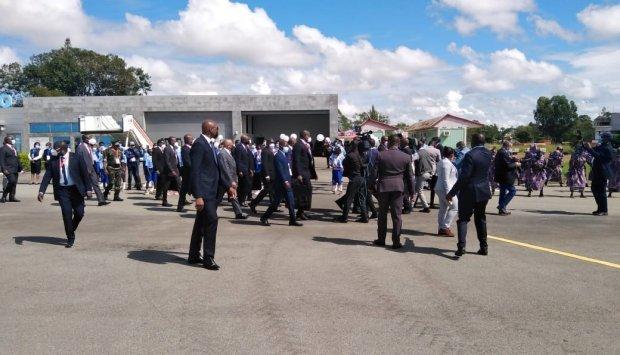 Upon arrival at Albano Machado Airport, João Lourenço was greeted by a crowd that was waiting for him at that aerodrome, accompanied by provincial governor Lotti Nolika.
