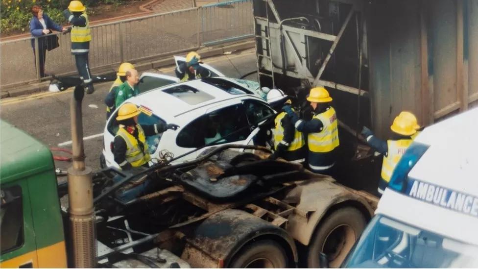 David took a photo of the crash scene and then recreated in miniature at art school in 1998