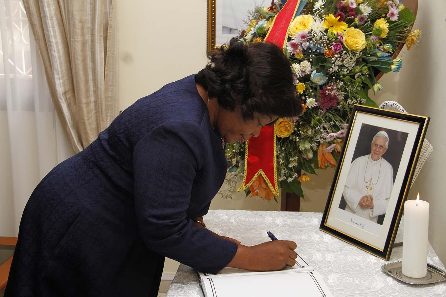 In the book of condolences, displayed at the Apostolic Nunciature, Esperança da Costa, praised the qualities of Pope Emeritus Benedict XVI as a “humanist and defender of the faith, guardian and man of love”.