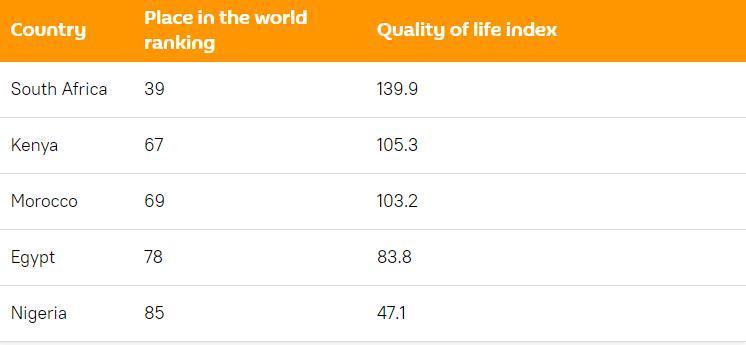 Press has looked at the five African countries with the highest quality of life.South Africa outperformed its peers in the purchasing power index, health care, house price-to-income ratio, and pollution index.