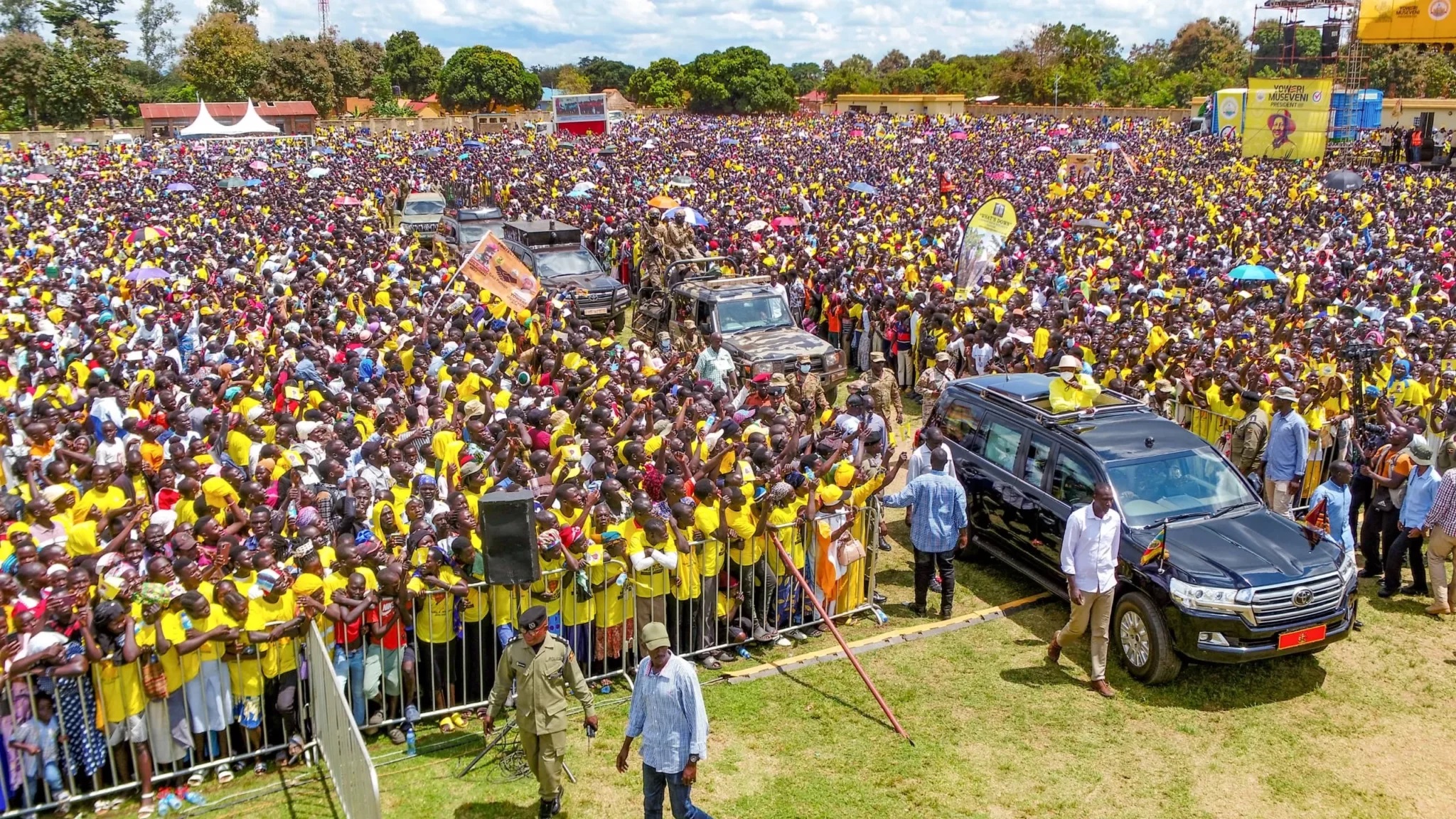 مقابل “القبعات الحمراء” تبرز “الموجة الصفراء”، وهو وصف يطلقه حزب “حركة المقاومة الوطنية” على مناصري موسيفيني.