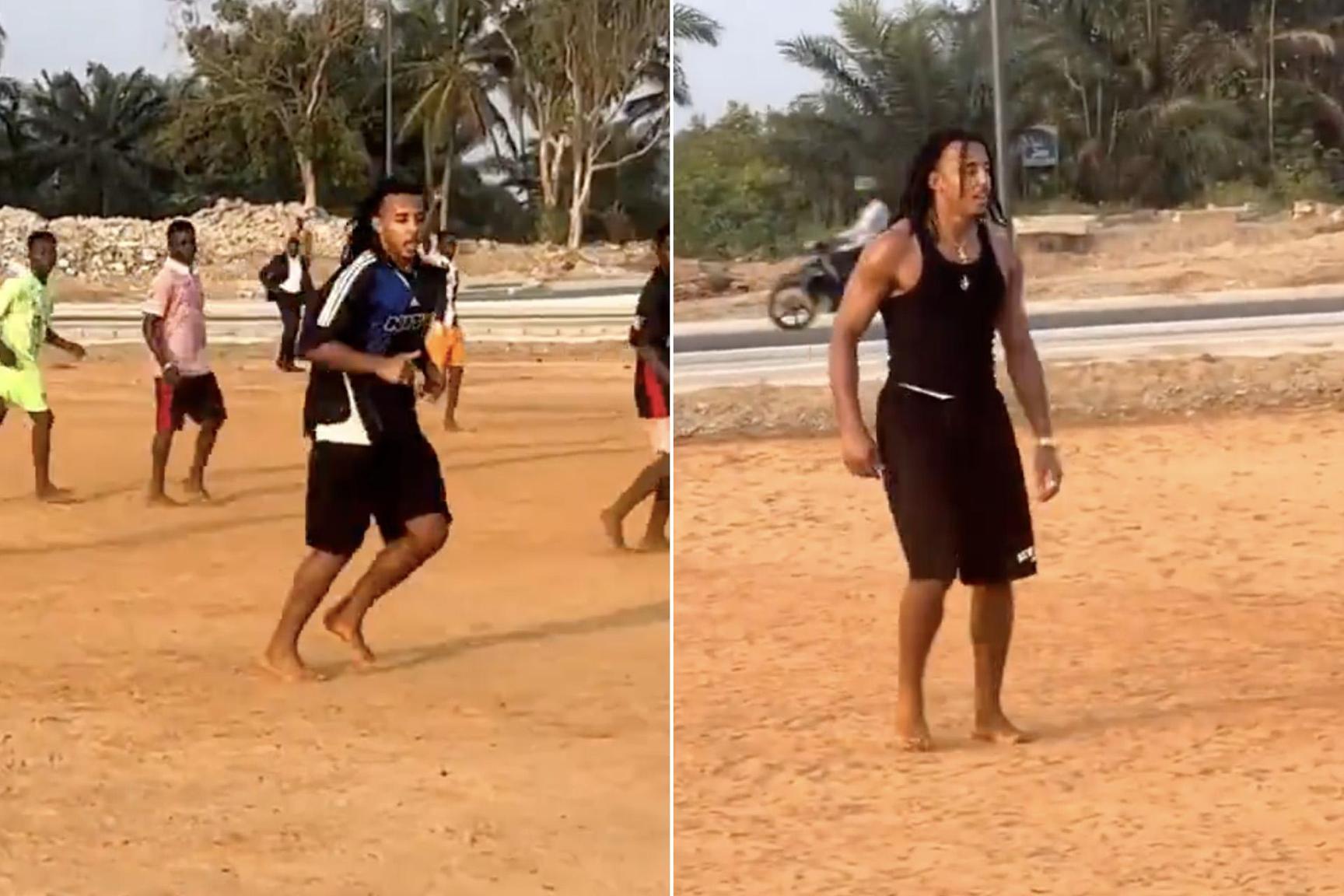 وانتشر مقطع فيديو على مواقع التواصل الاجتماعي يظهر فيه كوندي (27 عاما) وهو يلعب حافي القدمين مع الأطفال على أرضية ترابية.