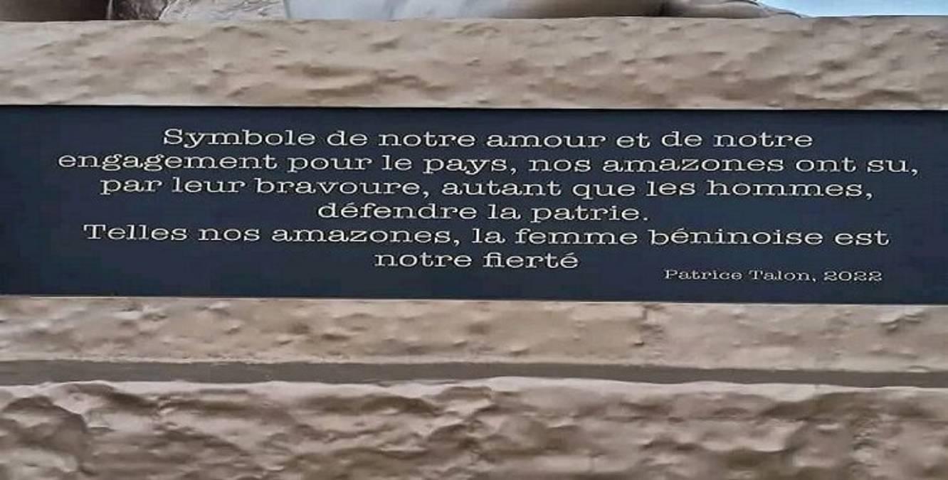 Africa-Press – Benin. Correction sur l’épigraphe de la statue de l’Amazone. Le mot « tel », préalablement mal orthographié a été finalement corrigé après les justifications servies par le porte -parole du gouvernement, qui avait réagi à la polémique.