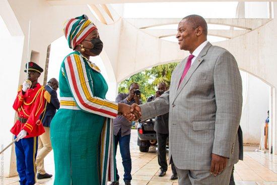 La mission béninoise, initiée sur instruction du chef de l’Etat Patrice Talon, a séjourné du 1er au 5 mai 2022 Centrafrique. La délégation béninoise a été reçue en audience par le président de la République centrafricaine Faustin Archange Touadera. Occasion pour la vice-présidente du Bénin, Mariam Chabi Talata de solliciter le soutien de la Centrafrique pour la candidature du Bénin.