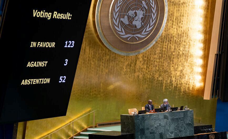 La résolution, portée par le Ghana, a recueilli 123 voix pour. Trois pays — l’Argentine, Israël et les États-Unis — ont voté contre, et 52 se sont abstenus.