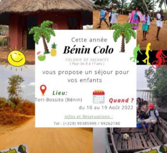 Pour les enfants et adolescents entre 8 et 17 ans, Bénin Colo a prévu du 10 au 19 août 2022 une colonie de vacances à Tori-Bossito. Le séjour sera rythmé par des activités, des sorties pédagogiques et des découvertes culturelles. Toutes les activités seront encadrées par des moniteurs dynamiques et qualifiés.