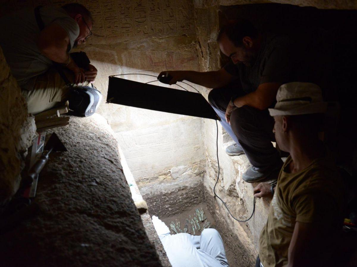 La découverte a été effectuée lors de travaux préliminaires du programme de conservation de la nécropole royale, qui comprend la construction d’un nouveau toit, le nettoyage des tombes et la restauration de leurs parois. Crédits: Mission Française des Fouilles de Tanis de l’EPHE-PS/Frédéric Payraudeau