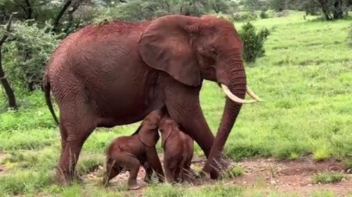Dans une vidéo postée par Save the Elephants sur son compte X (ex-Twitter), on peut voir les deux bébés éléphants téter leur mère, en présence des autres individus du groupe.