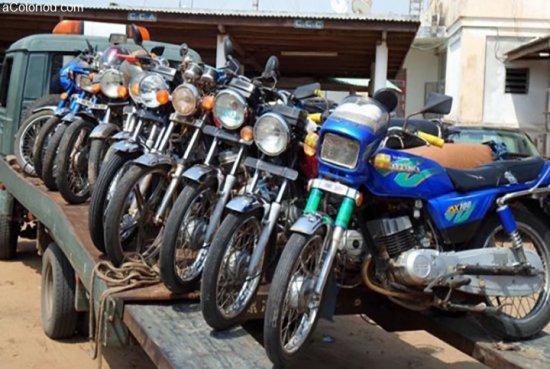 Une centaine de motos ont été arraisonnées puis envoyées en fourrière par la Police républicaine dans le département de l’Ouémé. Les propriétaires des motos ont été verbalisé pour des infractions au Code de la route. Il s’agit pour certains du non-respect du couloir de circulation, défaut de pièces ou non-port de casques pour d’autres conducteurs.
