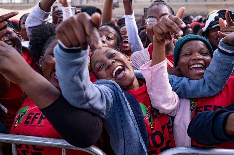 On Thursday in South Africa’s Limpopo province, opposition EFF supporters sing and dance at a rally marking the Soweto uprising 46 years ago.