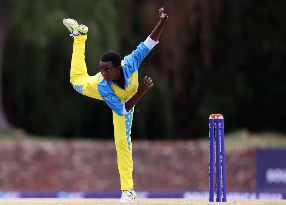 In action on a cricket pitch on Tuesday, Rwandan bowler Zurafat Ishimwe is on the winning side as her team defeats Zimbabwe in the ICC Women’s U19 T20 World Cup 2023 to record their first major tournament victory.