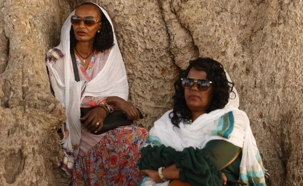 These women prefer to sit and watch as worshippers mark what they believe to be the baptism of Jesus on the River Jordan…