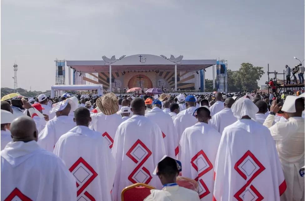 Several members of the clergy are in attendance as the Pope preaches a message about forgiving your enemies. His message is delivered as DR Congo faces internal conflict in the east of the country between the army and numerous militia groups…