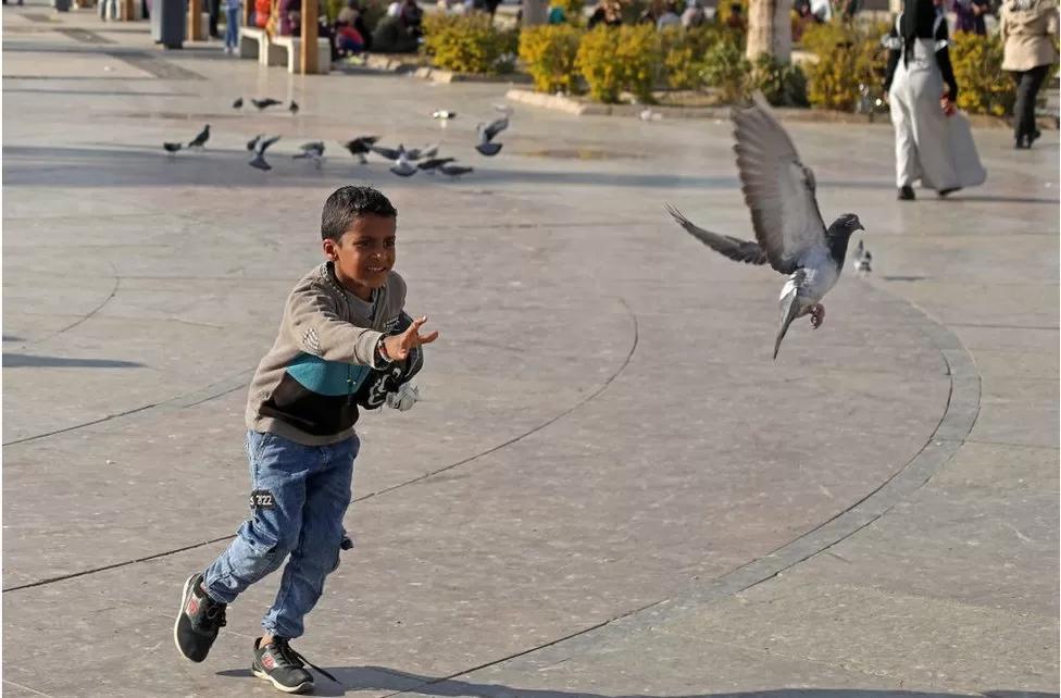 A boy tries to catch a pigeon as it flies away near the Abu al-Hajjaj Mosque in Luxor, Egypt on Saturday. The remains of an ancient Roman city were discovered in the Luxor area, just a few weeks ago…