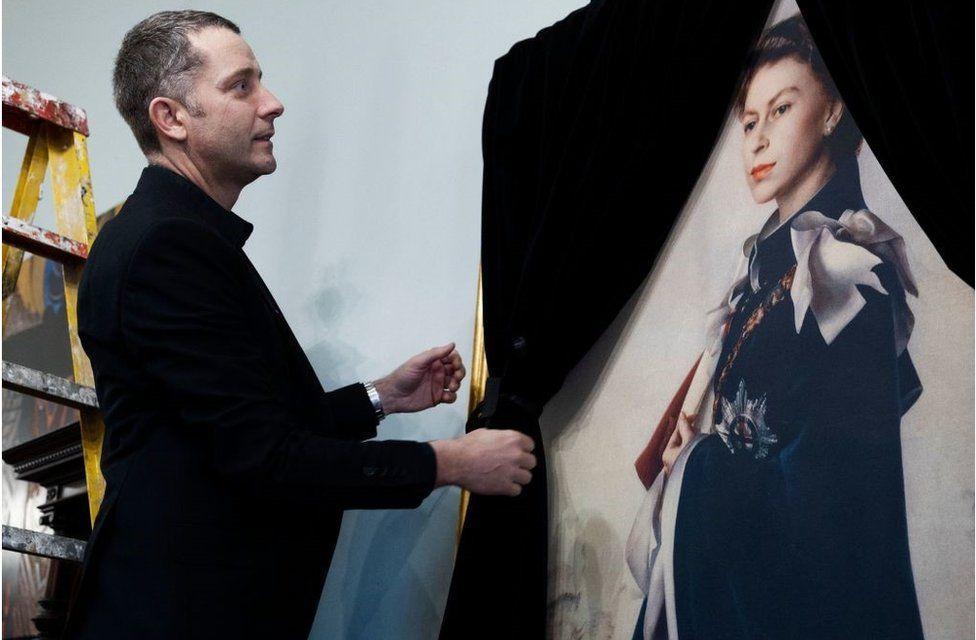 While in South Africa on Friday, a man looks at a painting of the Queen at Johannesburg’s Rand Club, following her death the previous day.