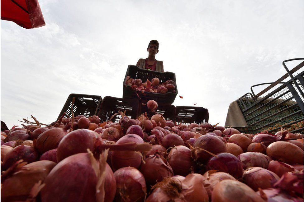 In Algeria on Thursday a boy empties a box of onions at an Algiers market…