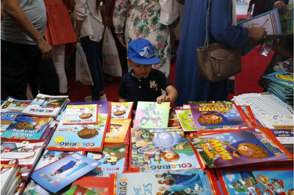 In the same city on Monday a child looks at books at a back-to-school fair…