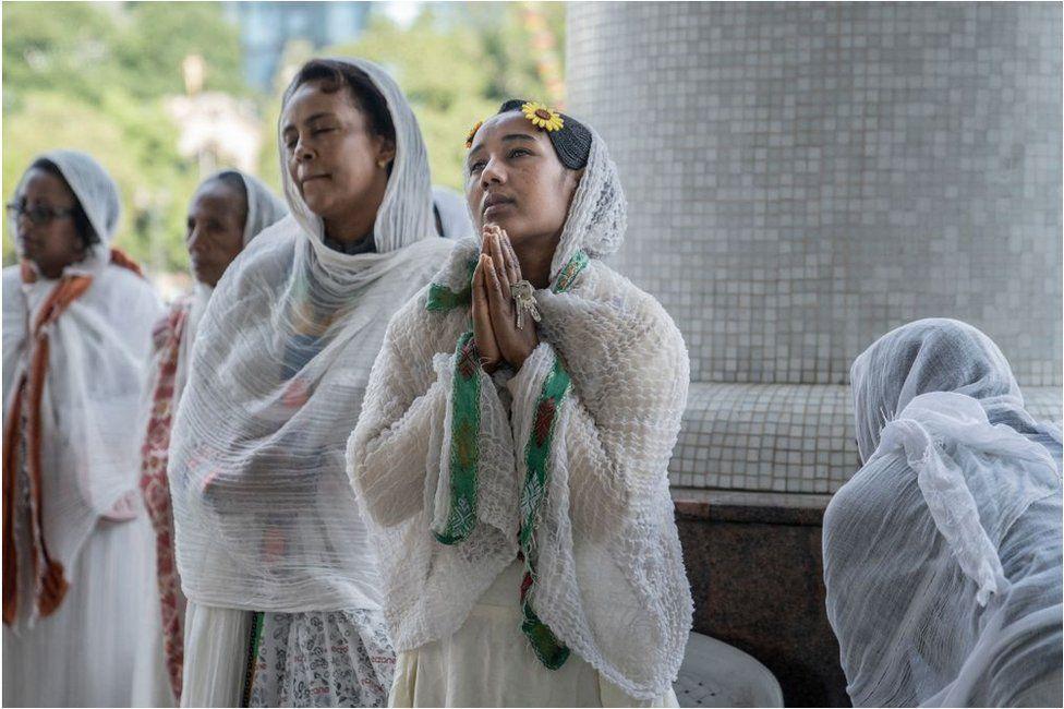 Meanwhile these Orthodox women are praying on the same day at the Bole Medhanialem Church on the Enkutatash public holiday which marks New Year…