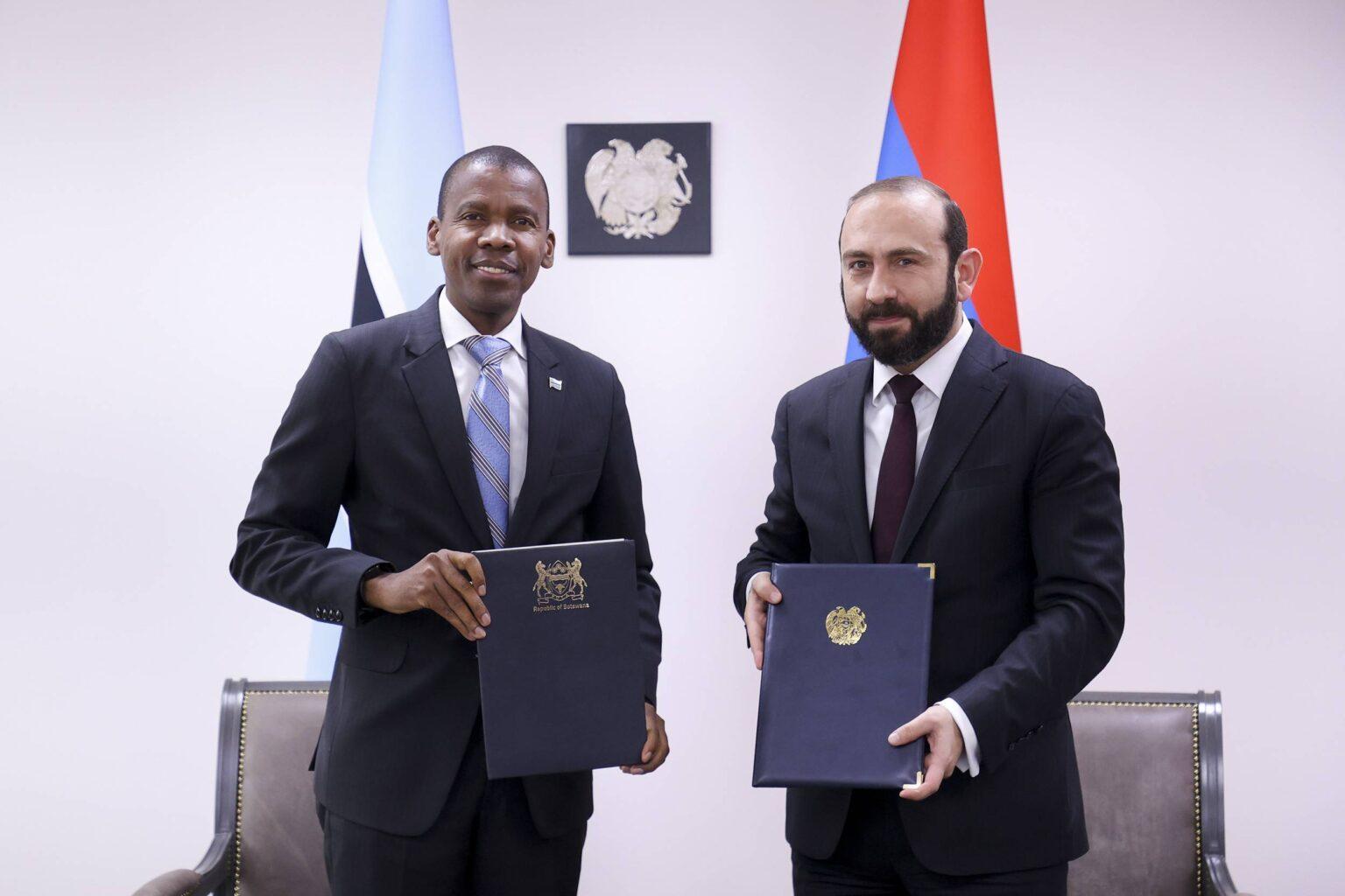 During the official signing ceremony, Ararat Mirzoyan said: “I want to congratulate the Republic of Armenia and the Republic of Botswana on the occasion of this important event. Indeed, we are opening a new chapter in our relations, if we approach the issue very formally, we are establishing those relations, at least the diplomatic part. And we hope that in the future, thanks to our work and based on the values that we share, we will develop our cooperation in various fields, from agriculture to science, education and of course also cooperation on international platforms.”