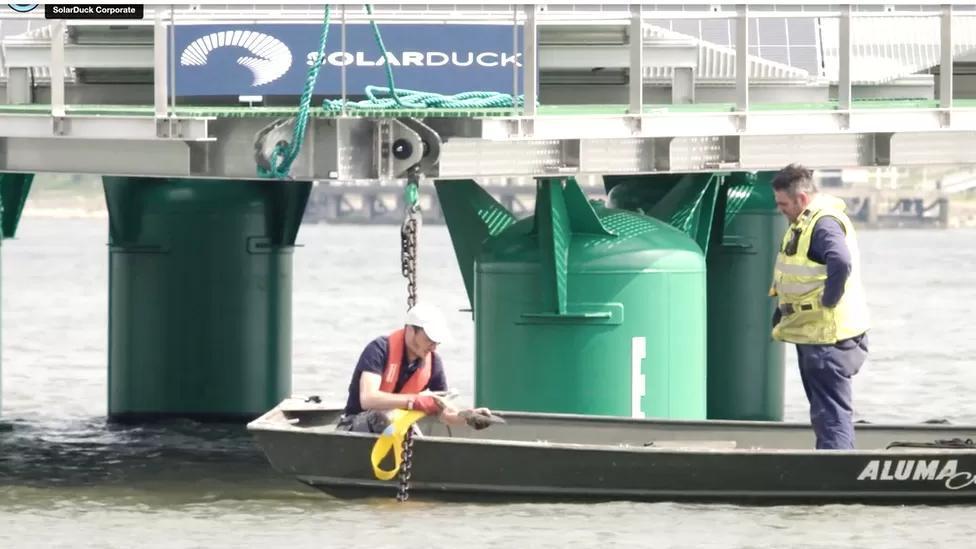 Mr Huang argues that both of these approaches have weaknesses. By lifting the panels above the surface of the sea, SolarDuck’s system could be a more expensive solution.