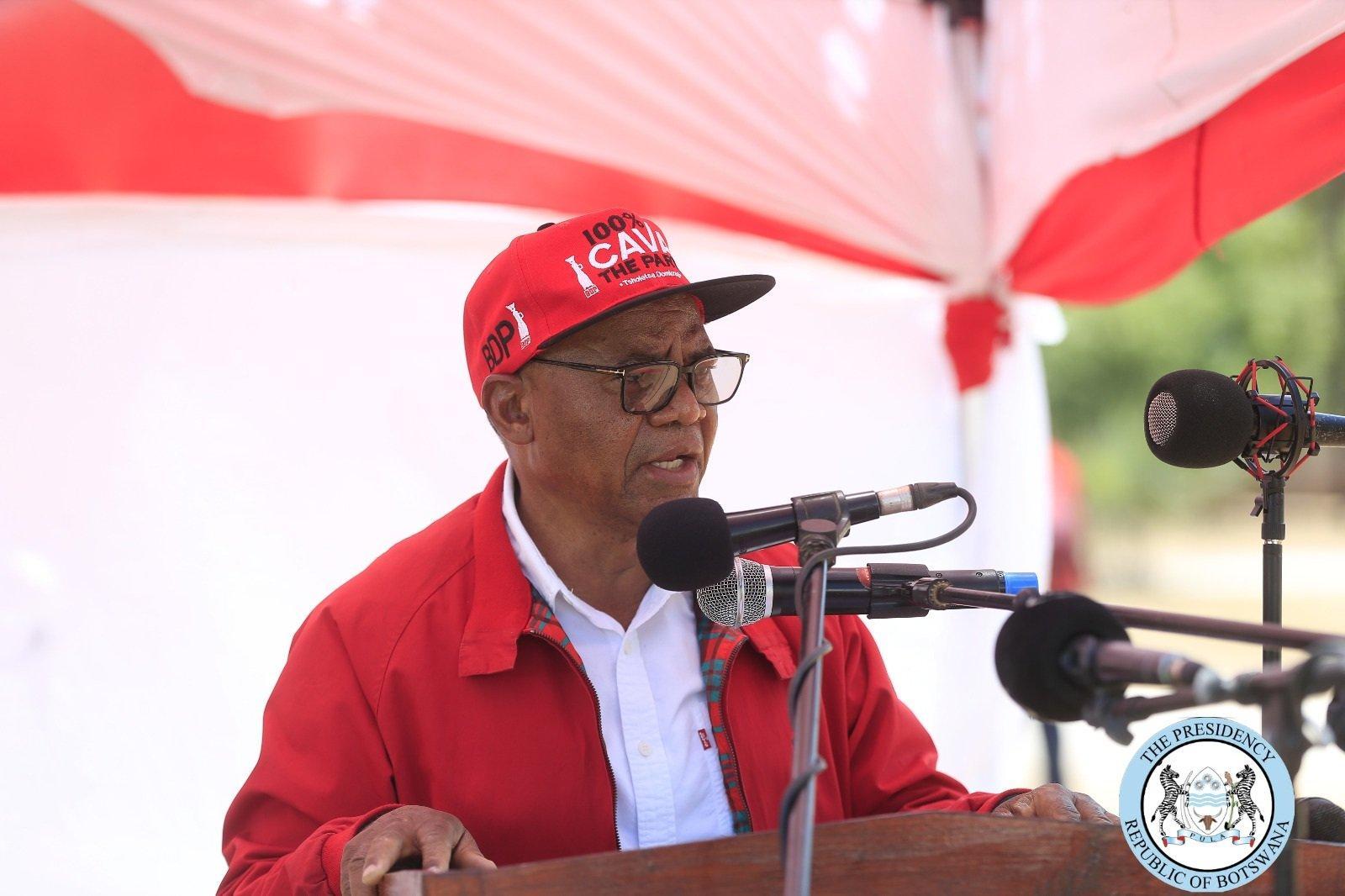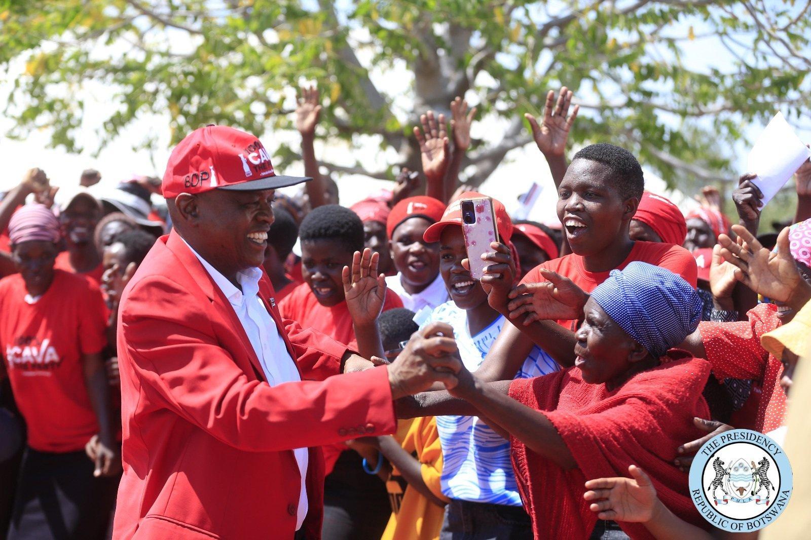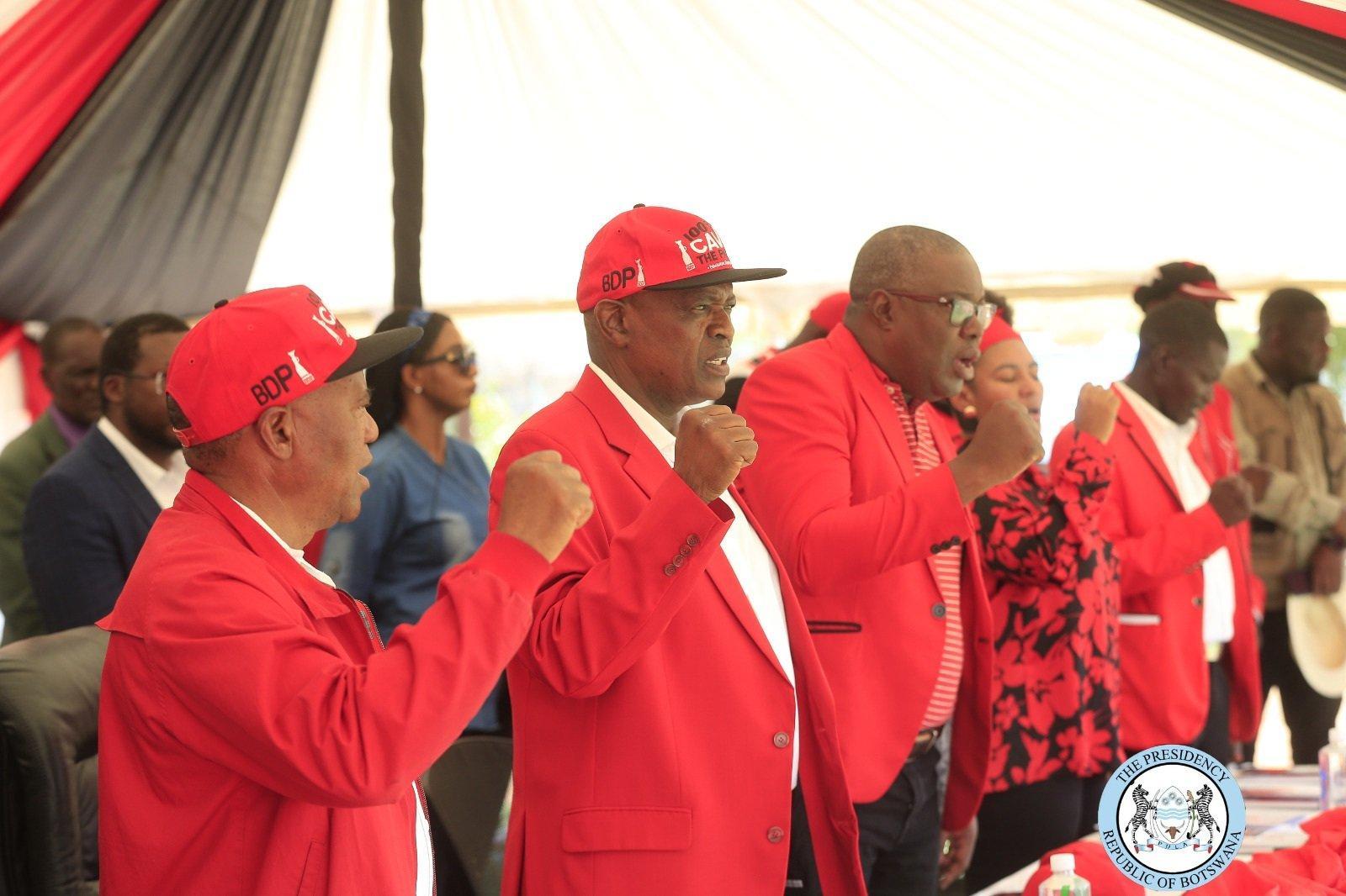 Africa-Press – Botswana. His Excellency Dr. Mokgweetsi E.K.Masisi recieved by fellow members of the Botswana Democratic Party at the Sepopa Star Rally in the North West Region.