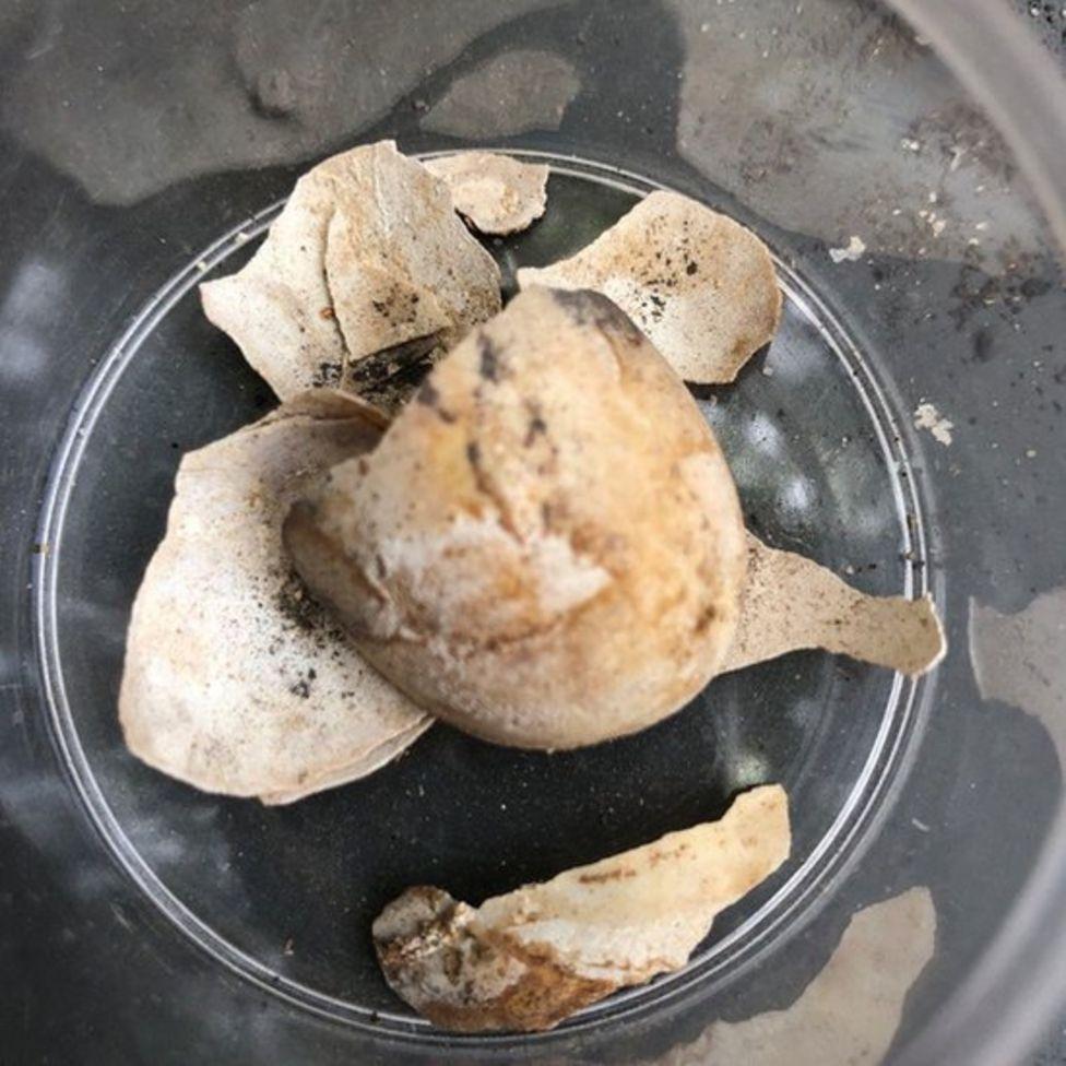 “They had just removed the shell of the animal, so what was visible was the skeleton and the egg,” Joonas Vanhala said. “It was a light-brown, sandy colour.”