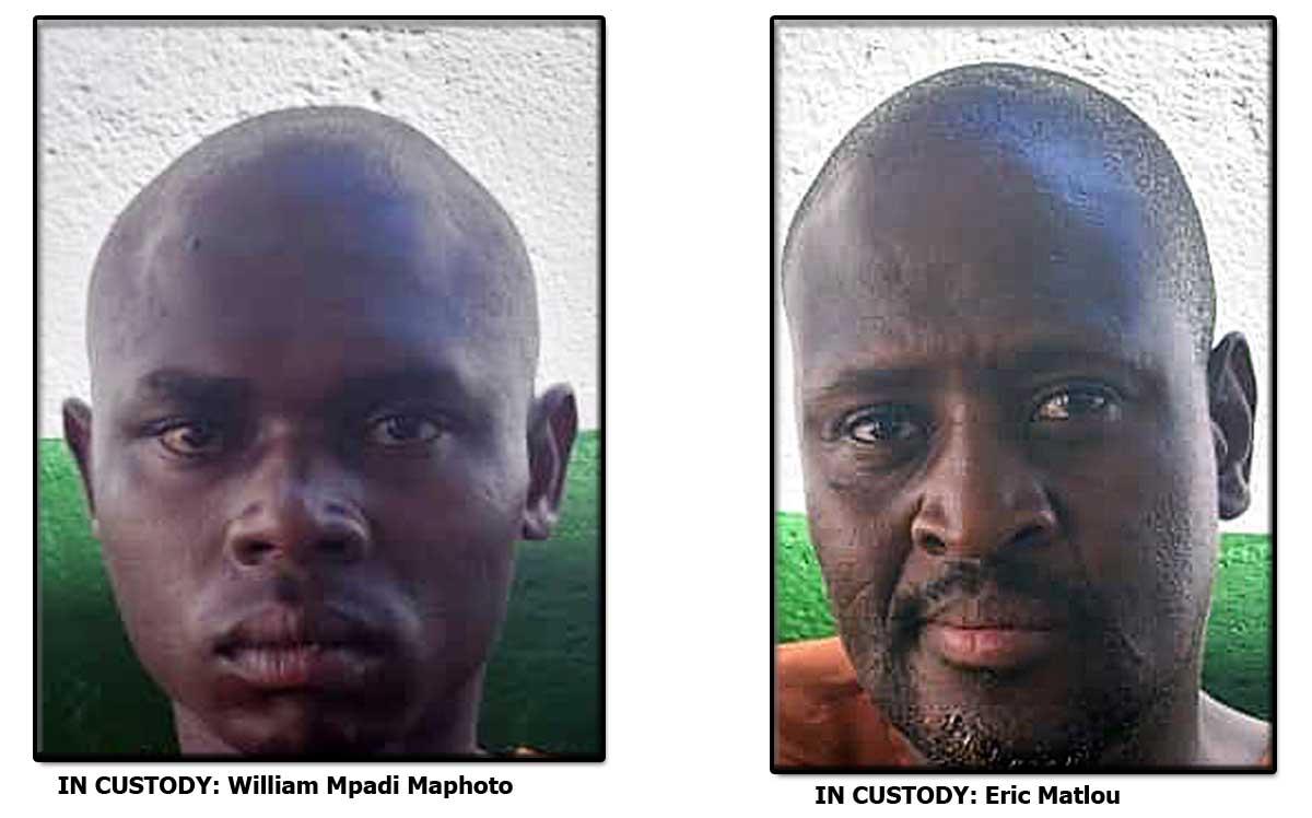 The two suspects, William Mpadi Maphoto, aged 30, and Eric Matlou, 42, were arraigned before Village Magistrates court on Wednesday facing two counts of unlawful possession of a gun and unlawful possession of ammunition.
