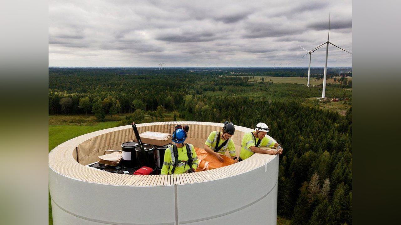 From the outside, there is little obvious difference between the Modvion wooden turbine and its steel cousins.