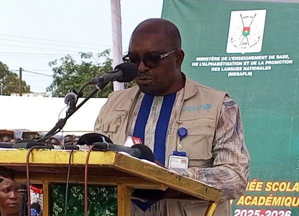 Au nom des partenaires techniques et financiers, le représentant de l’UNICEF, Alain Joseph Tokam Mambou, a salué la résilience du système éducatif burkinabè et la mobilisation de l’ensemble des acteurs malgré les défis. Il a félicité le gouvernement pour les progrès enregistrés, notamment la hausse du taux de scolarisation, qui est passé de 74,4 % en 2022-2023 à 78,7 % en 2024-2025. Il a souligné les efforts déployés pour rouvrir plus de 1 400 écoles et délocaliser près de 400 structures éducatives dans les zones à fort déplacement interne, garantissant ainsi la continuité de l’apprentissage pour des milliers d’enfants. Le représentant de l’UNICEF a également annoncé la poursuite de la campagne Back to School, qui permettra la distribution de plus de 220 000 kits scolaires à travers le pays, ainsi que des initiatives complémentaires dans le domaine de la santé et de la protection de l’environnement. Il a évoqué la construction de huit nouveaux collèges d’enseignement secondaire, dont trois à vocation technique, financés par la coopération japonaise, ainsi que quinze autres établissements soutenus par les coopérations allemande et japonaise. Ces actions, a-t-il insisté, traduisent la solidarité concrète des partenaires à l’égard du Burkina Faso et leur engagement à garantir à chaque enfant le droit fondamental à une éducation de qualité.