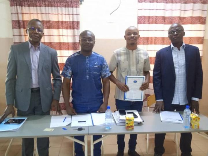 L’impétrant s’en est sorti avec la mention très bien, les félicitations du jury et la note de 17/20. Le jury était composé de Dr Dimitri Régis Balima (président), Dr Lassina Kaboré (directeur de mémoire) et Dr Cyriaque Paré (maître de stage). La soutenance s’est faite à huis clos pour des raisons sanitaires. Inocent H. Alloukoutoui (Stagiaire)