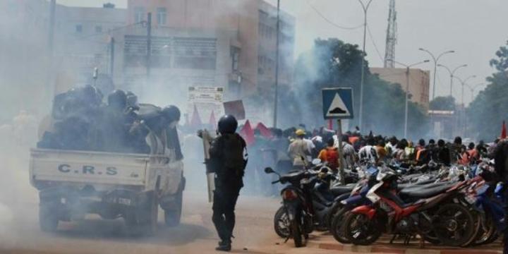Les policiers anti-émeutes faisaient face manifestants place de la Nation, en plein centre de la capitale burkinabè, qui était quadrillée par un important dispositif de sécurité et où tous les commerces étaient fermés.