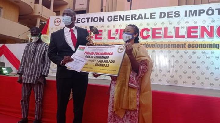 Le grand prix de l’excellence 2021 du meilleur agent de la direction générale des impôts est remporté par Yacouba Sow, de la direction des grandes entreprises. Celui du meilleur contribuable 2021, catégorie entreprises, est décerné à Boissons rafraichissantes du Burkina Faso (BRAKINA SA).