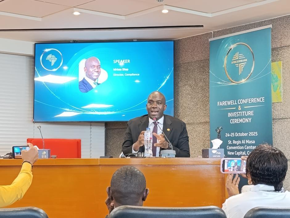 « Si une banque souhaite acquérir une technologie ou un système pour son département de conformité, nous pouvons lui accorder un prêt pour l’acheter », a expliqué Idrissa Diop, directeur de la conformité d’Afreximbank, en marge de la conférence d’adieu du président Benedict Oramah, le 24 octobre au Caire. Ce dernier a officiellement transmis le flambeau à son successeur, le Camerounais George Elombi, lors des cérémonies organisées les 24 et 25 octobre 2025 au Nouveau Caire, où l’institution est établie depuis 1994, date du démarrage de ses activités.