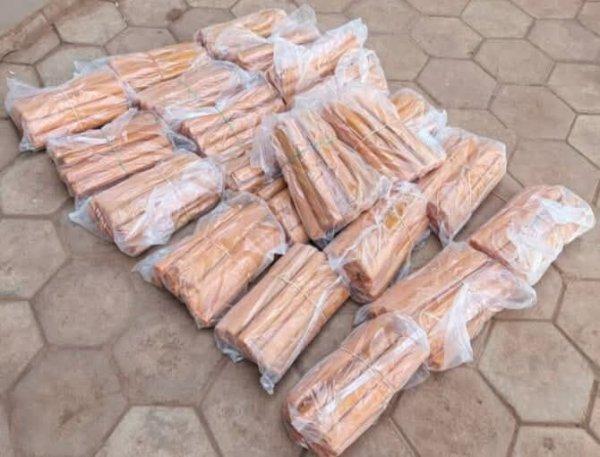 C’est grâce à une fouille méticuleusement menée que la supercherie a été découverte. Chaque sac contenait 22 sachets de 15 bâtonnets, soit au total 42 900 bâtonnets d’explosifs. En plus des explosifs, 200 sacs de fils à tresser ainsi que 24 balles de sachets plastiques ont aussi été découverts. La valeur totale du matériel saisi est estimée à 33 850 000 FCFA.