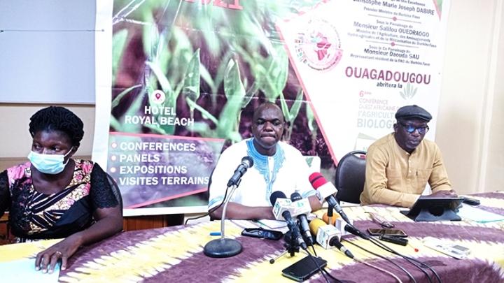 Africa-Press – Burkina Faso. Le Conseil national de l’agriculture biologique (CNABio) tiendra du 23 au 26 novembre 2021, à Ouagadougou, sa 6e conférence ouest-africaine sur l’agriculture biologique, sous le thème : « Nourrir le monde sans l’empoisonner ». Le président du Conseil d’administration du CNABio, a initié une conférence de presse ce lundi 18 octobre 2021, à Ouagadougou pour donner le top départ des activités.