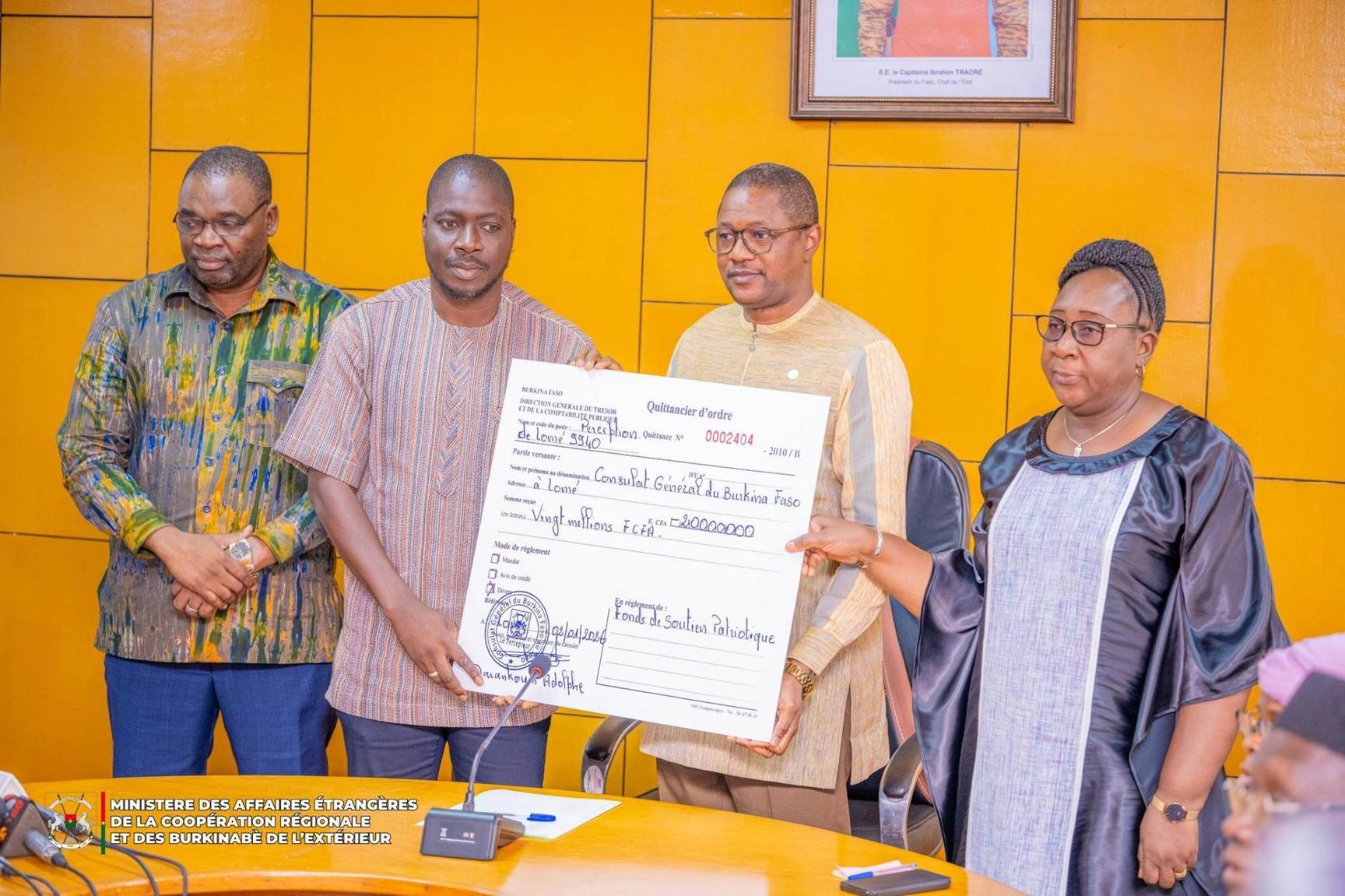 Africa-Press – Burkina Faso. La diaspora du Togo a mobilisé 20 millions de FCFA en numéraire, ainsi que des dons en nature d’une valeur de plus de 2 millions de FCFA destinés aux personnes déplacées internes. De son côté, la diaspora du Koweït a contribué à hauteur de 2 millions de FCFA, dont 1 million pour le Fonds de soutien patriotique et 1 million pour l’initiative présidentielle Faso Mêbo.