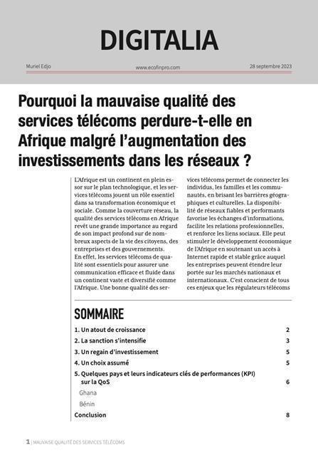 Intitulé « Pourquoi la mauvaise qualité des services télécoms perdure-t-elle en Afrique malgré l’augmentation des investissements dans les réseaux ? », le rapport précise que la bonne qualité des services télécoms revêt en importance cruciale, au même titre que la couverture réseau. D’autant plus qu’elle peut stimuler le développement économique du continent en soutenant un accès à Internet rapide et stable, grâce auquel les entreprises peuvent étendre leur portée sur les marchés nationaux et internationaux.