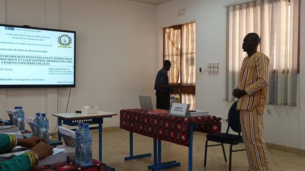 L’impétrant Adama TINGUERI, quatre années durant, s’est attelé à analyser les dynamiques des ressources potentielles en terres dans la Boucle du Mouhoun à travers les chartes foncières locales. L’objectif de sa recherche étant, de contribuer à l’efficacité des chartes foncières locales pour une amélioration des conditions de vie des paysans.