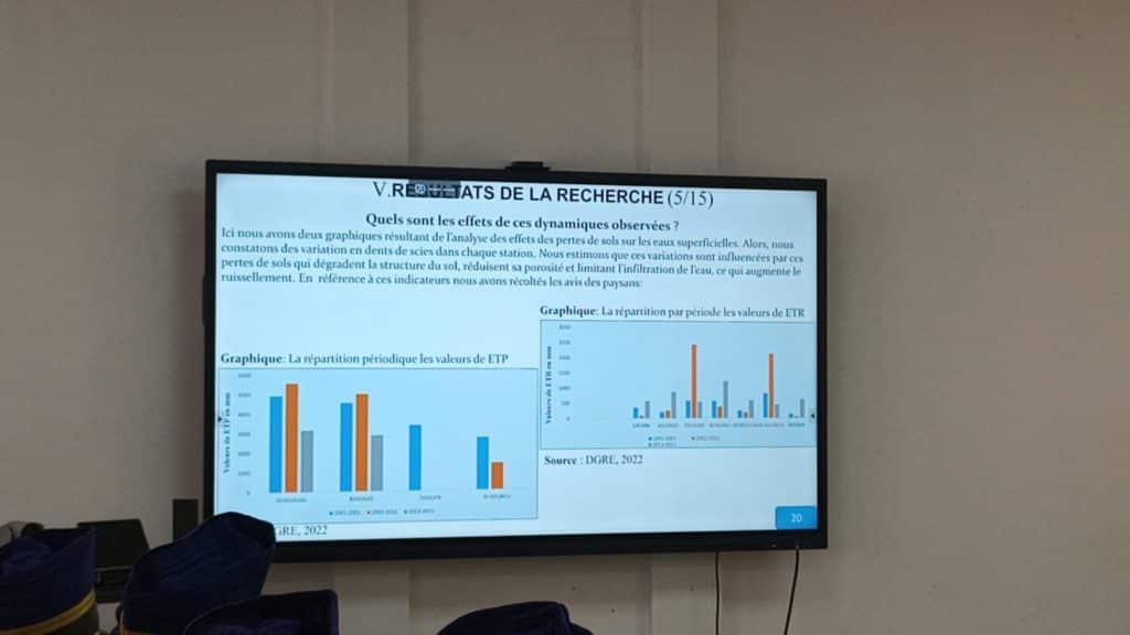 Au titre des résultats obtenus, l’impétrant a, entre autres, fait observer que l’évolution des pertes de sols par l’érosion hydrique est l’une des causes principales de cette dégradation du potentiel des terres.