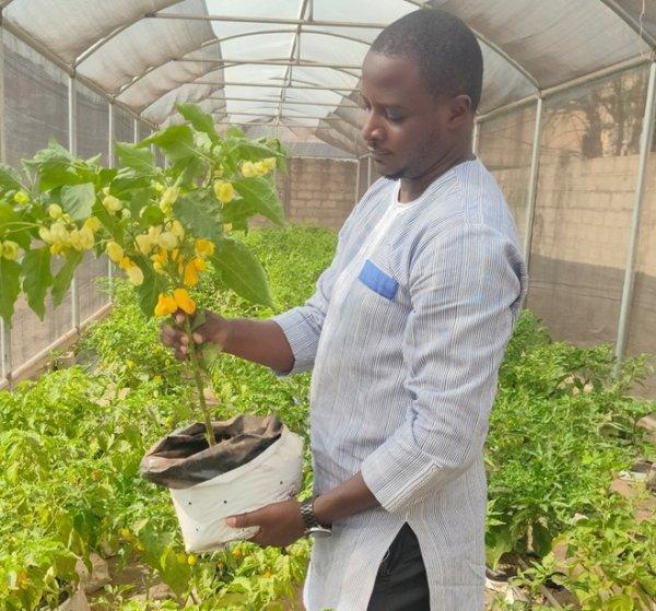 Les serres d’AgriMinga ressemblent à des laboratoires verts. Des plants de piment, de tomates ou de légumes-feuilles y prospèrent dans des sacs anti-UV ou des supports hydroponiques, nourris par des solutions nutritives précises et contrôlées. L’eau circule en circuit fermé, recyclée à chaque passage, ce qui réduit de près de 80 % la consommation d’eau par rapport à l’agriculture traditionnelle. « Nos systèmes utilisent des capteurs connectés pour mesurer l’humidité, la température, le pH, la conductivité électrique… Ces données sont intégrées à une plateforme intelligente qui ajuste automatiquement l’irrigation et la fertigation », détaille Josias.