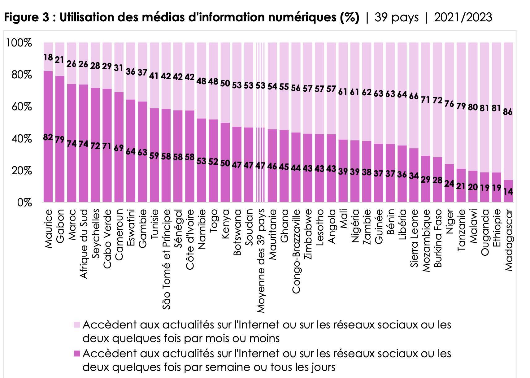 L’information numérique commence à devenir l’une des principales sources d’information en Afrique. C’est ce que suggère un sondage publié en avril 2024 par Afrobarometer qui indique que sur la période 2021-2023, 41% des participants utilisent internet, essentiellement les sites d’information en ligne et leurs extensions sur les réseaux sociaux, pour s’informer. Sur la période 2014-2015, seulement 22% des sondés d’Afrobarometer s’informaient grâce à internet.