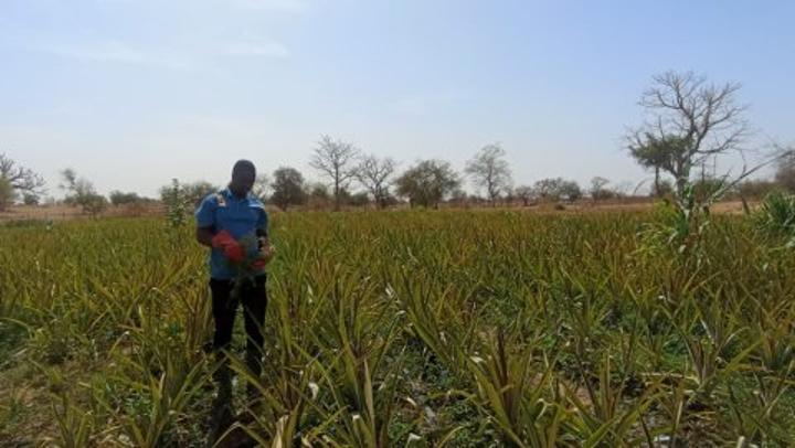 Fort de cette expérience, il décide de tenter l’aventure dans son propre village. Il met en place une plantation d’ananas avec l’espoir de diversifier ses sources de revenus et d’inspirer d’autres jeunes de sa communauté. Cependant, le parcours n’a pas été sans difficultés. « Normalement, la production commence 18 mois après le semis. Mon champ a atteint ce stade, mais la production n’a pas encore véritablement commencé à cause d’un problème d’eau au départ », explique-t-il. Le manque de maîtrise de l’irrigation a constitué un obstacle majeur. Mais fidèle à sa détermination, Moussa a su s’adapter. Aujourd’hui, il affirme avoir amélioré la gestion de l’eau sur son exploitation et reste optimiste. « Je pense que d’ici les mois de mai-juin, la production pourra commencer », rassure-t-il.