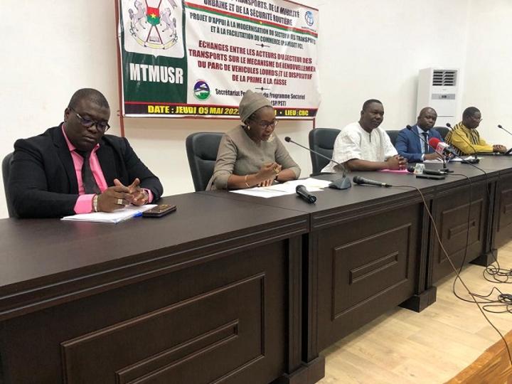 Africa-Press – Burkina Faso. Le ministre des Transports, de la Mobilité urbaine et de la Sécurité routière a eu, le jeudi 5 mai 2022 à Ouagadougou, une séance d’échanges avec les transporteurs routiers du Burkina Faso. Mahamadou Zampaligré voulait les convaincre d’adhérer au projet de renouvellement du parc automobile dont le principal partenaire financier est la Banque mondiale.