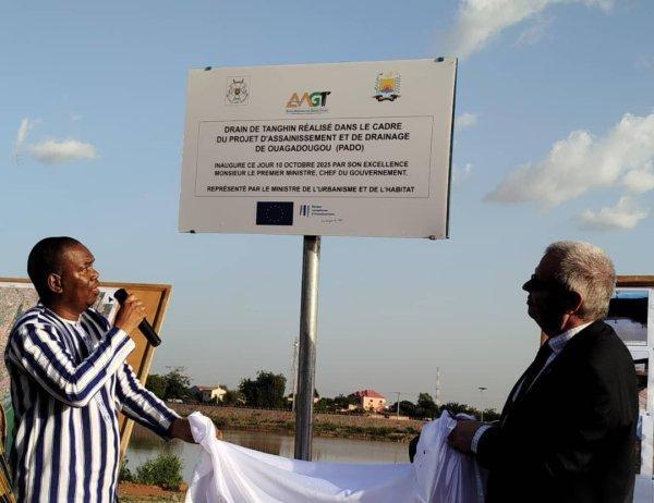 Africa-Press – Burkina Faso. Dans le cadre du Projet d’assainissement et de drainage de Ouagadougou (PADO), la commune de Ouagadougou, à travers l’Agence municipale des grands travaux (AMGT), a procédé à l’inauguration du drain de l’arrondissement 4 (Tanghin). La cérémonie officielle d’inauguration a eu lieu le vendredi 10 octobre 2025 à Ouagadougou. Elle a connu la présence du ministre en charge de l’Urbanisme, Mikaïlou Sidibé, des autorités locales ainsi qu’une mobilisation effective des habitants de la zone.