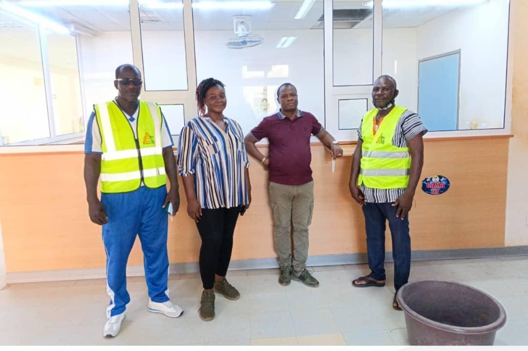 Au-delà de la salubrité, l’association a concrétisé un projet de sécurisation pour le personnel des guichets. Constatant l’agitation et la pression exercée sur les agents de caisse, Burkind Gouélé a fabriqué et installé un cloisonnement de sept mètres comportant deux guichets vitrés.