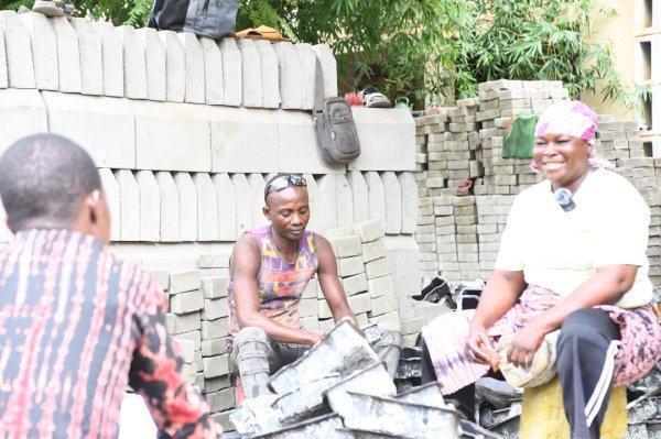 Cette mère de six enfants, 54 ans, foulard noué sur la tête, un autre servant de ceinture pour empêcher son pagne de se défaire en plein travail, participe au classement et à la confection des pavés. Sous le soleil, elle nettoie à nouveau les moules de pavés en vue de les préparer pour la fabrication d’autres. Depuis plus d’une semaine, elle quitte son domicile à Pissy (quartier situé à la sortie ouest de Ouagadougou) pour rallier le site de Faso Mêbo. Elle arrive à 7h30 et ne repart chez elle qu’à 17h. Ce matin encore, Dame Ouédraogo est à Faso Mêbo après avoir parcouru une dizaine de kilomètres à vélo.