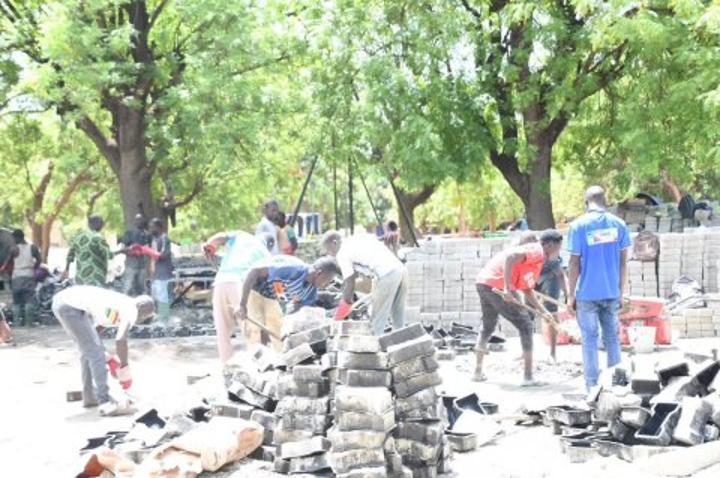 Sur le site, c’est un travail sans relâche. Grâce aux lampadaires solaires et aux groupes électrogènes, les activités se poursuivent jour et nuit. « Si je ne suis pas fatigué, je continue, même la nuit. C’est ma contribution », explique Albert Nikièma, épuisé mais fier, assis à l’ombre d’un arbre.