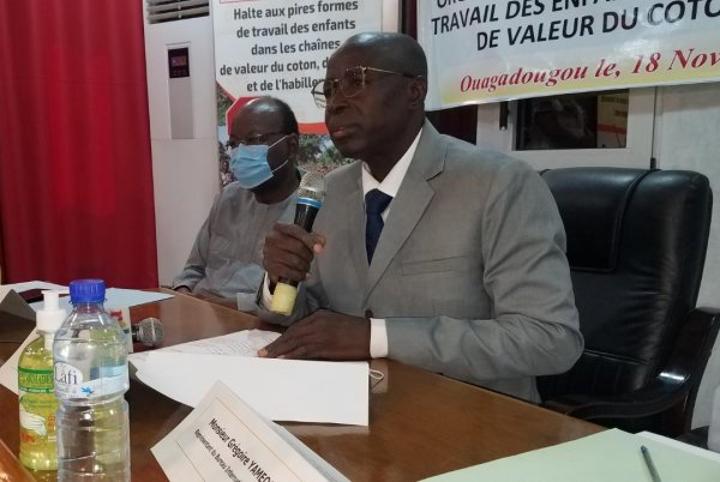 Après avoir demandé une minute de silence en mémoire des forces de défense et de sécurité tombées dans l’attaque du 14 novembre à Inata, le représentant du ministre de la fonction publique, Jean Marie Sampougdou, a réitéré l’engagement de son département au projet. « Les recettes d’exportation du coton fournissent chaque année au Burkina Faso, une source stable de devises étrangères qui a accéléré le développement économique dans d’autres secteurs », a-t-il relevé. Mais, ajoute-t-il, la filière coton, au regard des enjeux économiques qu’elle implique et de ses exigences en termes de main d’œuvre, recouvre souvent des réalités aux antipodes du travail décent préconisé par les normes internationales du travail. Il s’agit selon lui, de la convention N°138 et 182 de l’OIT auxquelles le Burkina a souscrit. D’où la nécessité de cet atelier pour informer les acteurs.